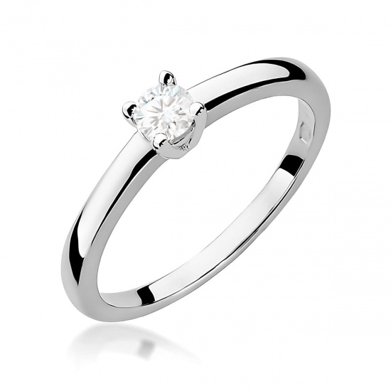 Łączna Masa diamentów0,30ctKształtOkrągłyKruszec KolorZłoto BiałeKamień centralnyDiamentWymiary kamienia centralnego4.1mmMasa kamienia centralnego0.25ctWaga2.0 - 3.0gJakość kamienia centralnegoSI2 HKategoriaJednokamieniowePróba złota585ModelW0294