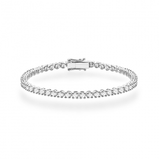 Masa kamienia dodatkowego A0.04ctLiczba kamieni dodatkowych A54Długość18cmWaga8.2 - 9.4gWymiary kamienia dodatkowego A2.2mmKruszec KolorZłoto BiałePróba złota585Łączna masa kamieni dodatkowych2.16ctModelB0028Kamienie dodatkowe ADiament Laboratoryjny